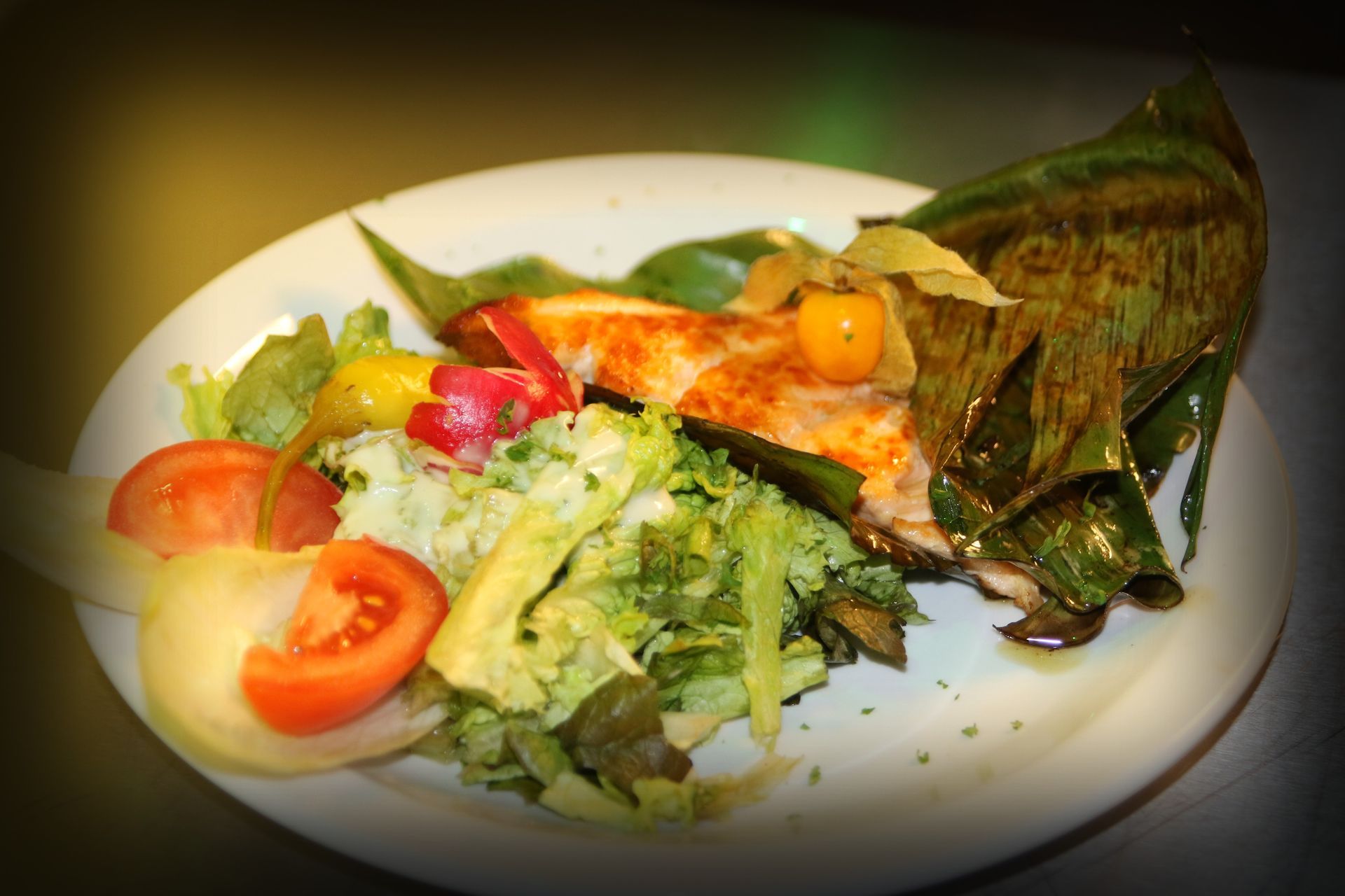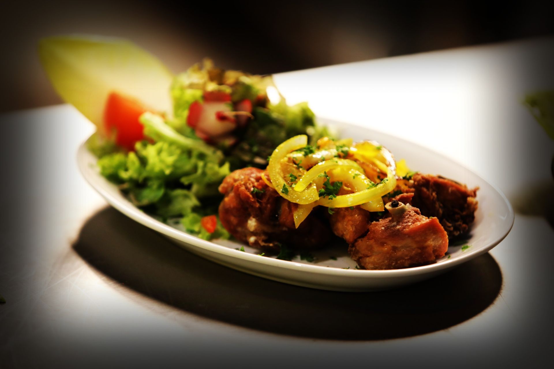 5ption 1 - 1/2 KG Gambas mit grünem Salat, Ciabatta-Brot und Aioli € 16,50