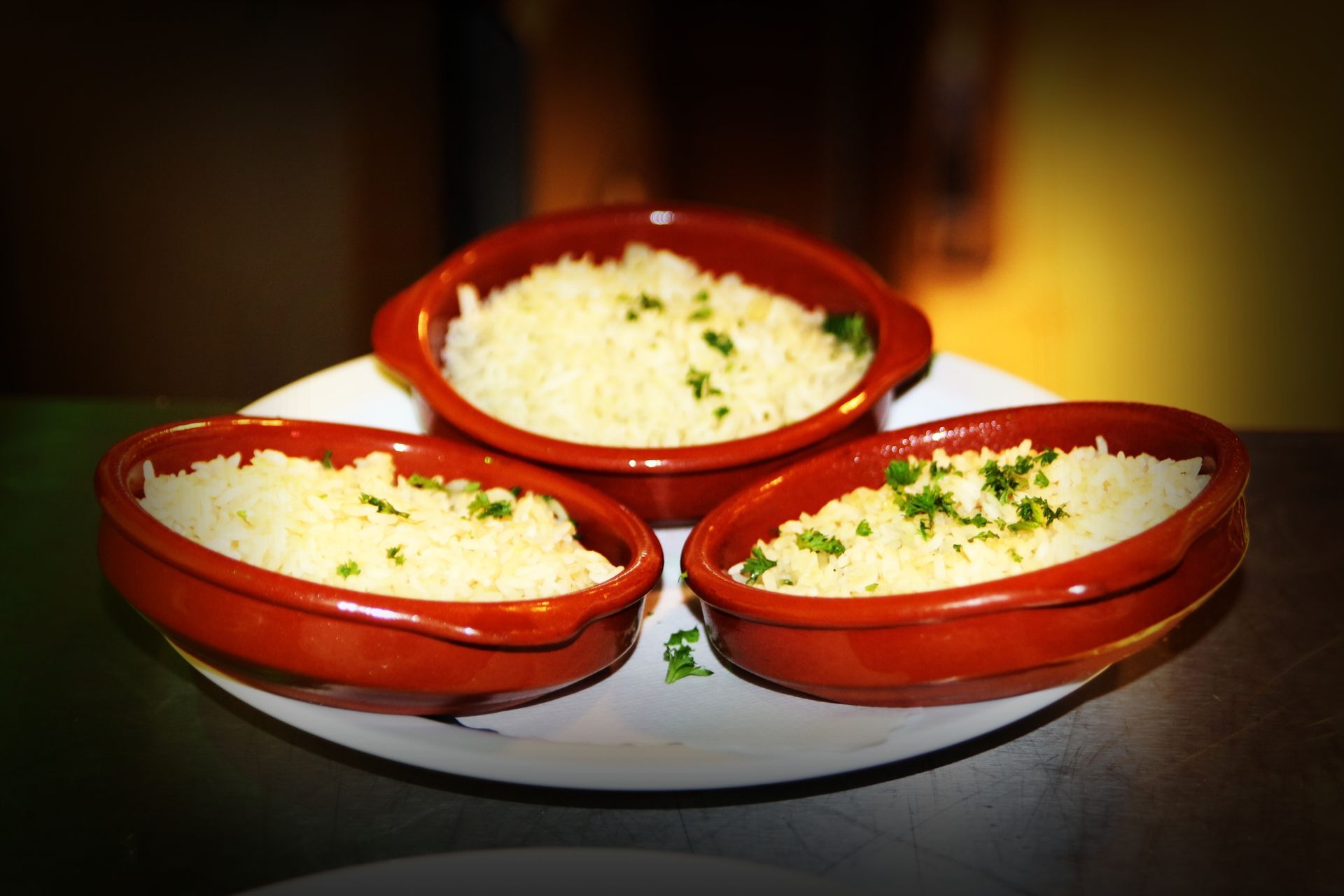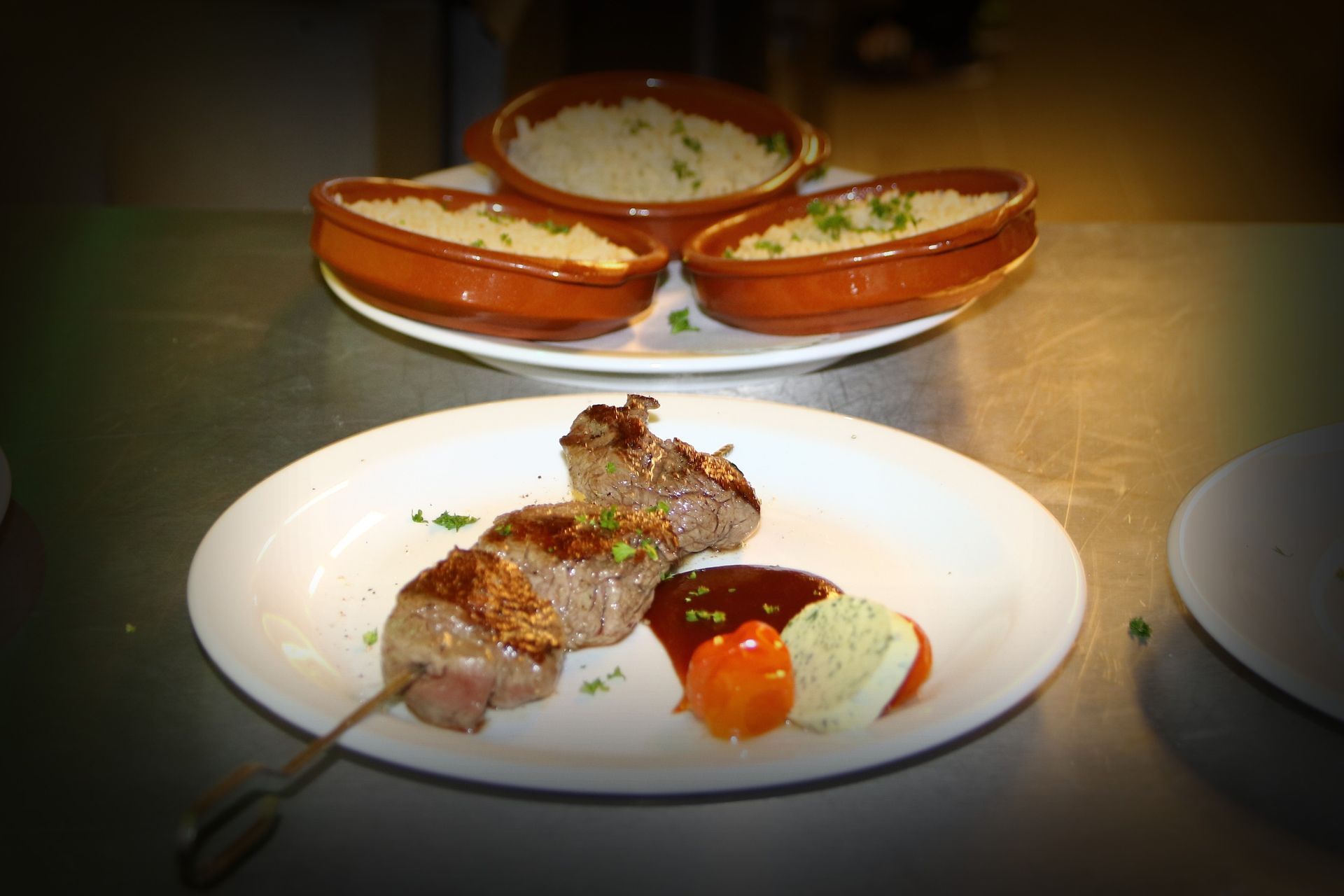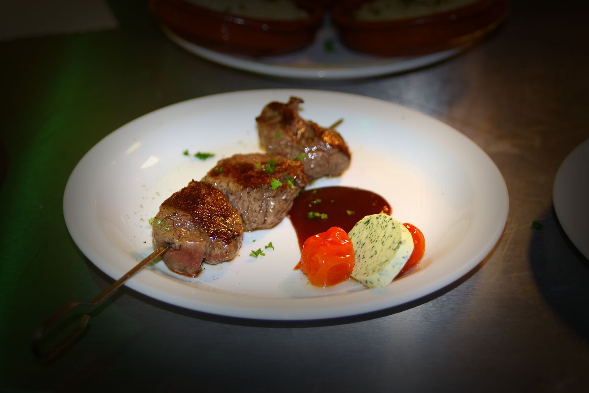 Gebratene Gambas im Knoblauchsud. Dass die Gambas ungeschält und mit Kopf auf den Tisch kommen, versteht sich. Sonst macht das Ganze keinen Spaß